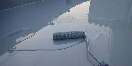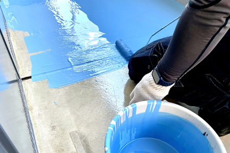 シートの接続部分から水が入ったり、塗料が剥がれたりするのを防ぐため、トップコートを塗って仕上げを行います。